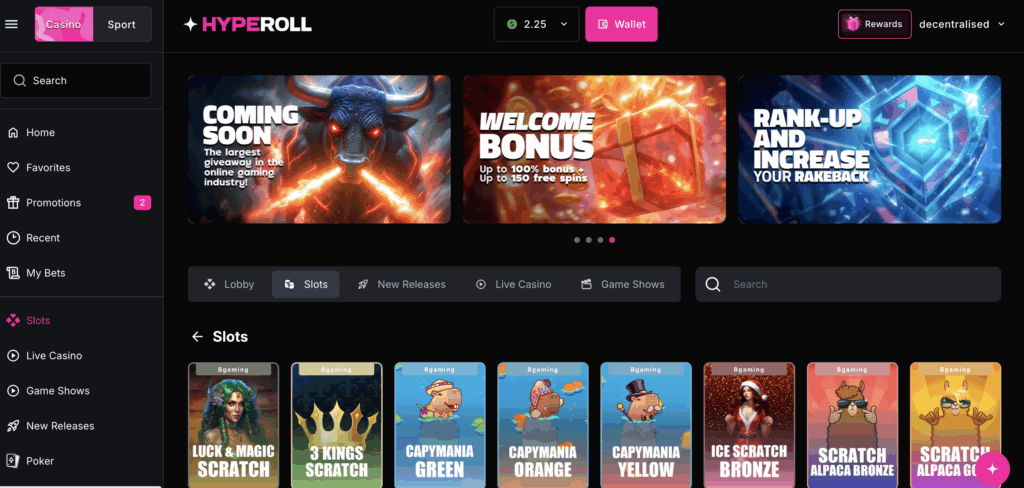Hyperoll successfully merges the thrill of iGaming with the transparency of blockchain-based finance. Its instant crypto payments, engaging VIP program, and modern design make it one of the most promising crypto casinos of 2025.